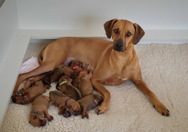 Am 04. März hat unsere Chelsea problemlos vier Rüden und fünf Hündinnen zur Welt gebracht. Wir freuen uns sehr über diesen schönen Wurf – Chelsea und ihre Welpen sind fit, agil und wohlauf. Nun genießen wir die ersten gemeinsamen Tage mit der kleinen Rasselbande und freuen uns auf eine spannende Welpenzeit.